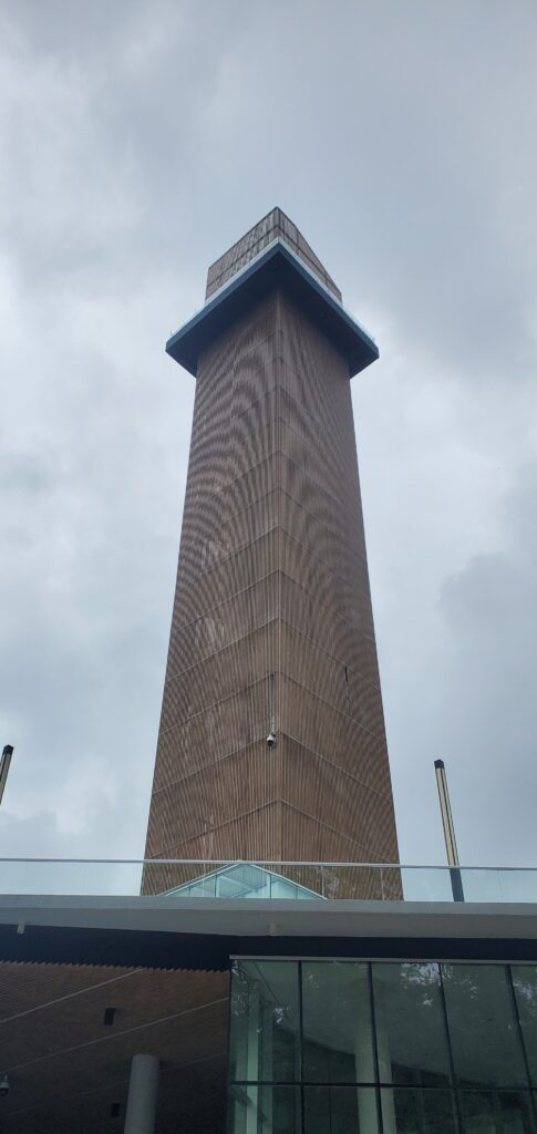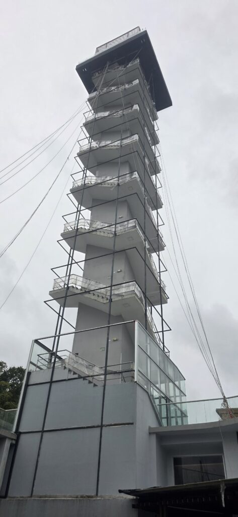 BananenstaudeBesucherzentraum – neu gebaut – nie eröffnet. Im Mai waren wir auf dem Turmda sah er noch so aus