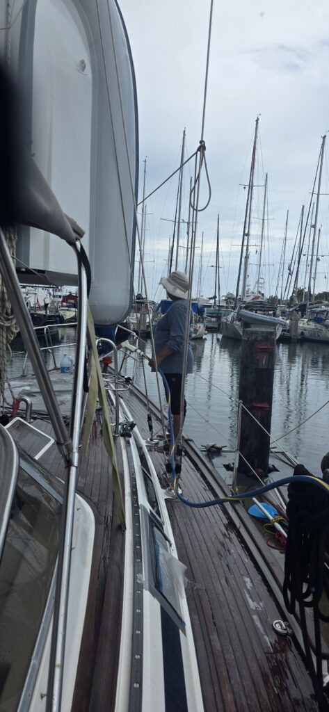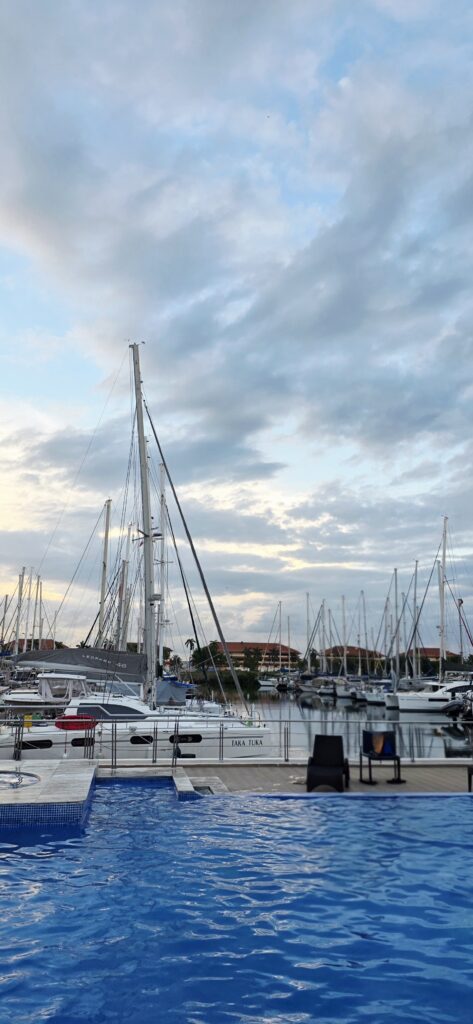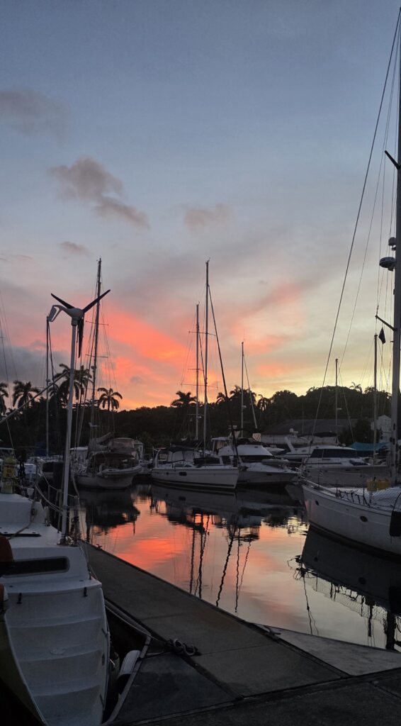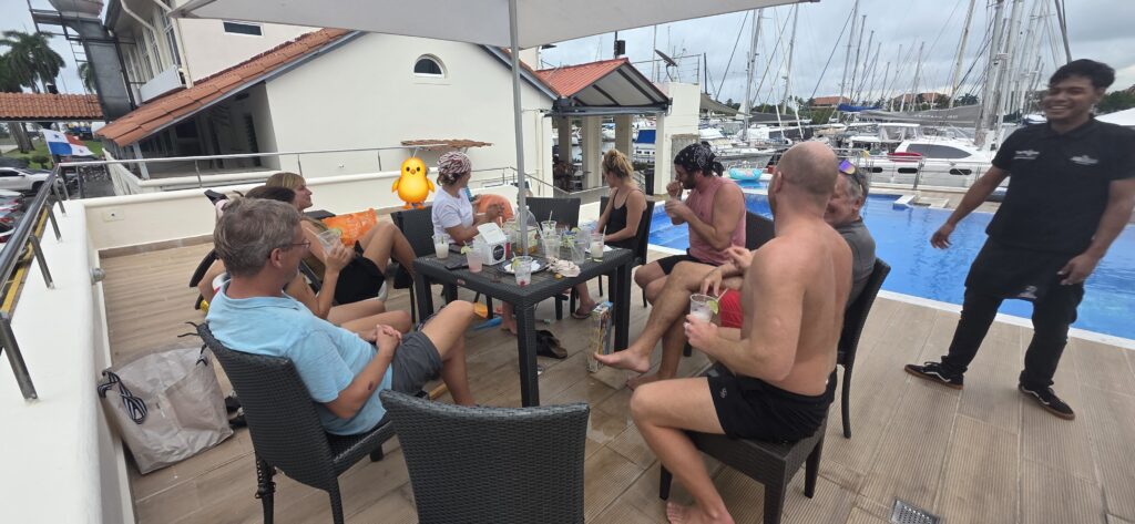 Wenn das Licht einfach schön istManchmal gibt es zum Feierabend ein Bier im PoolKurzer Einkaufstrip nach Colon – wir brauchen eine neue Starlink-AntenneWir lassen das Boot reinigen und der Freibord wird poliert – dauert aber sehr lange und unsere Erwartung passt nicht ganz mit der der Ausführenden zusammen. Aber am Ende ist alles gutDer Taucher reinigt das Unterwasserschiff. nach 4 Monaten ist ganz schön was gewachsenTypisches Tourifoto- direkt am Hafen für die Kreuzfahrschiffe in Colon