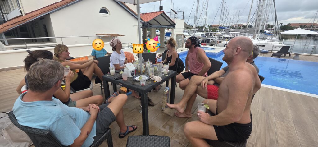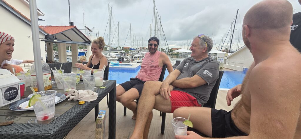 Für die Kinder gabs eine Piratenschatzsuche, Kuchen und für die Erwachsenen Frozen MargaritasOskar und Lotti (Serendipity), Till und Fanny mit Denise und den Kindern (Kailani), Bernhard und Daniela mit Kindern (Taka Tuka) und Michael vom Marina Dock RestaurantYes, geschafft. PazifikBereit für die nächste Etappe